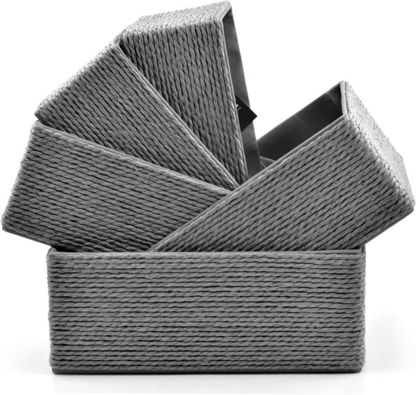 Acrola 5-Pack Decorative Storage Baskets, Stackable, Woven Paper Rope with Fabric Liner (Grey) ST05002